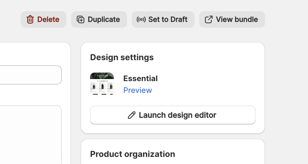 Navigate to your Bundles, click on the bundle you'd like to edit (or create a new one) and click on the 'Design editor' in the top right of your bundle: