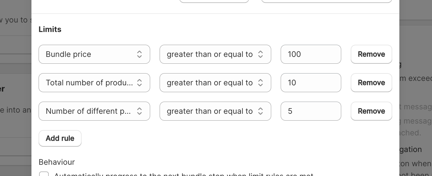 Limit rules allow you to define specific parameters that tailor your bundle to meet precise criteria.